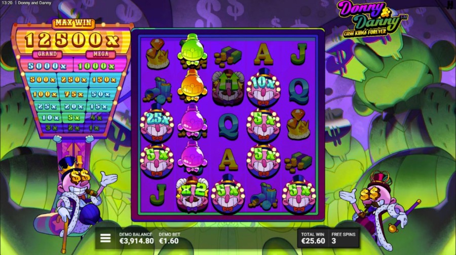 ☑️ LootLines Cash Wins: Landing 3+ Donny or Donny-Danny combos forms a LootLine where each Donny reveals a Cash Board value from 1x–12,500x.